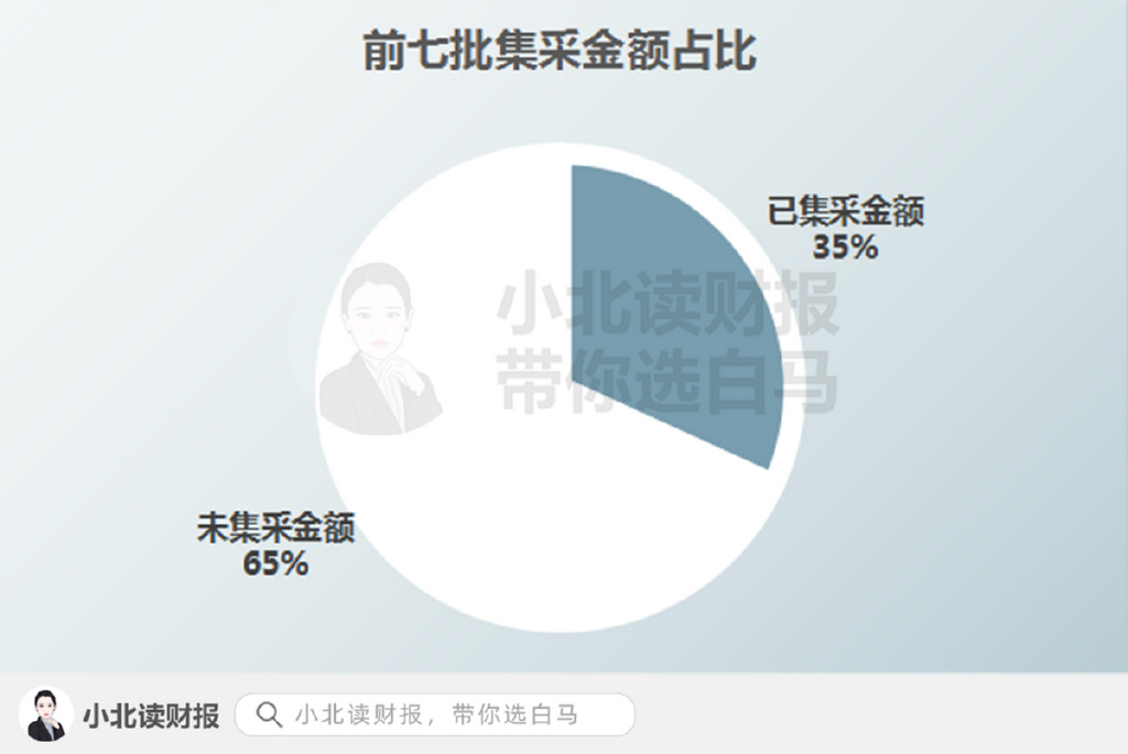 根据统计数据,按集采前价格,前七批集采品种涉及金额占到公立医疗机构化学药、生物药年采购额的35%,还有剩下65%的市场没有被集采,假设20%是创新药市场、25%是剩余生物药市场,剩下可能约20%的化学药还需要集采。