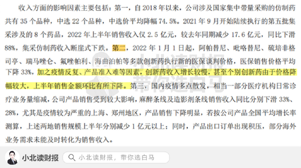 截至2022年上半年,恒瑞医药仍然在受第五批集采之苦,第五批集采于去年6月份开展,9月份开始在各省份陆续落地执行,按一年为周期的话,此影响将延续到今年8月份,也就是第三季度。