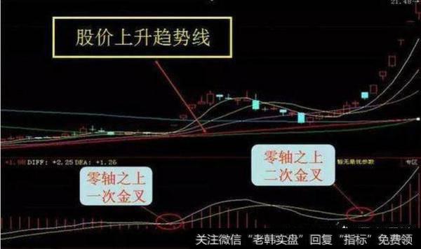股价在上升行情中,底部逐渐被抬高,在零轴之上MACD出现第一次金叉时,股价开始了一波上涨行情,最后出现短暂回调,MACD零轴之上出现第二次金叉,股价马上就出现了加上上涨的行情。
