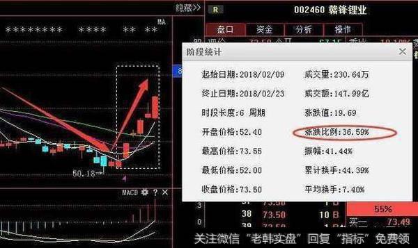 赣锋锂业这票是在2/09号通过独创选出法选出,当时股价没什么起色,但是在9号出现了单针探底,主力资金强势流入,截止目前涨幅已经高达36个点!